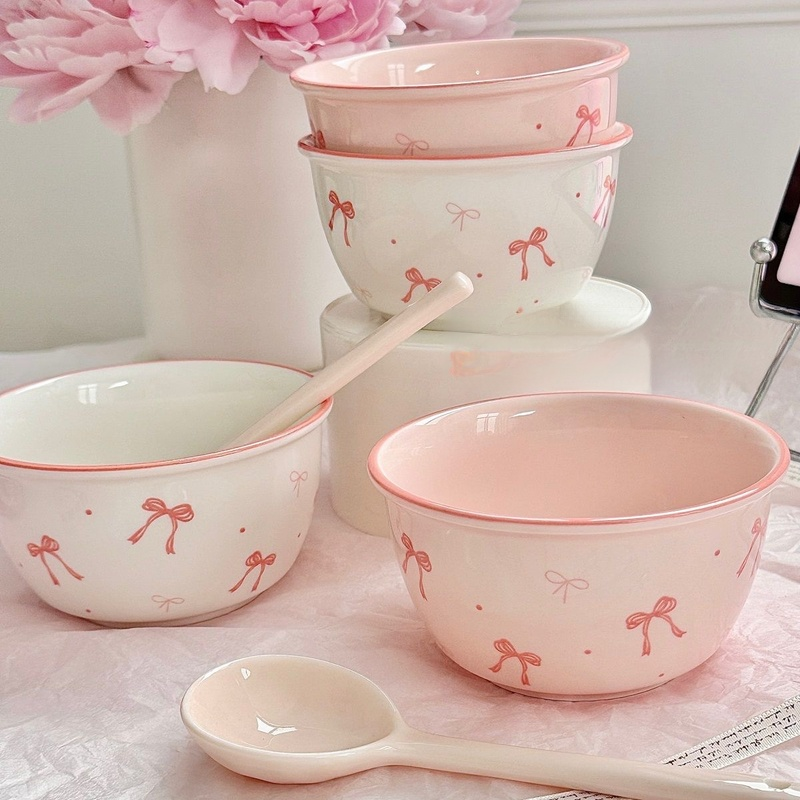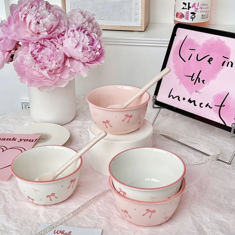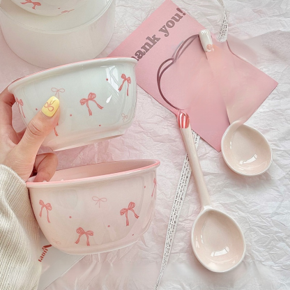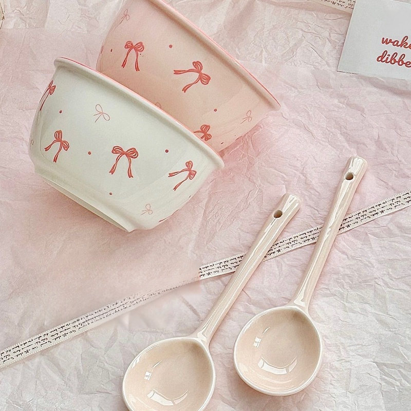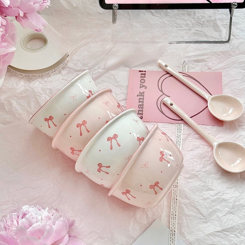 【Sada čtyř kusů】2 misky a 2 lžíce s mašlí